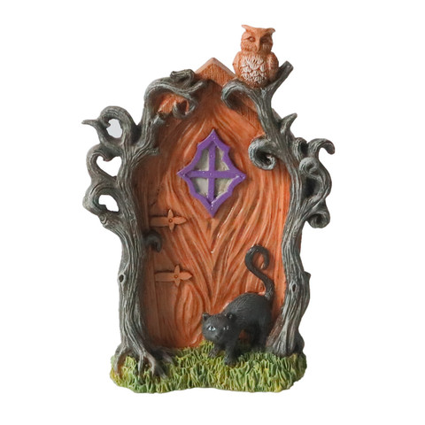 Mini arbre décoratif pour Halloween, porte en arbres de résine, avec chat et hibou, décor de jardin féerique en polyrésine, 5.6 pouces, nouvelle collection